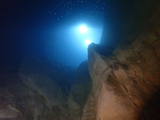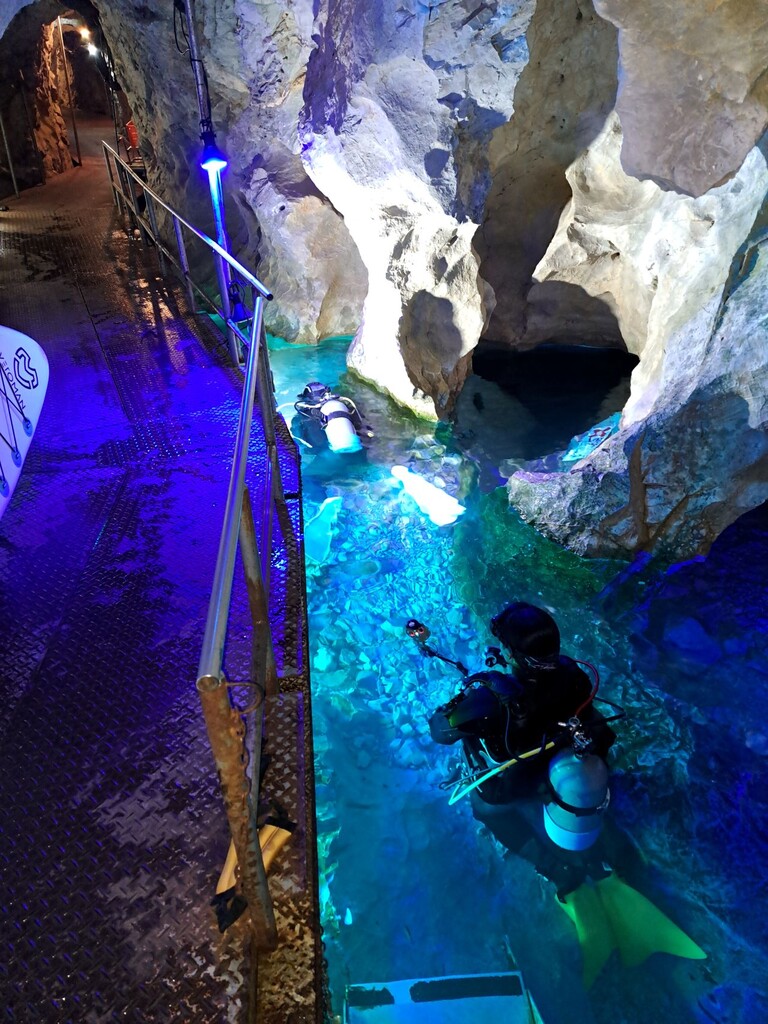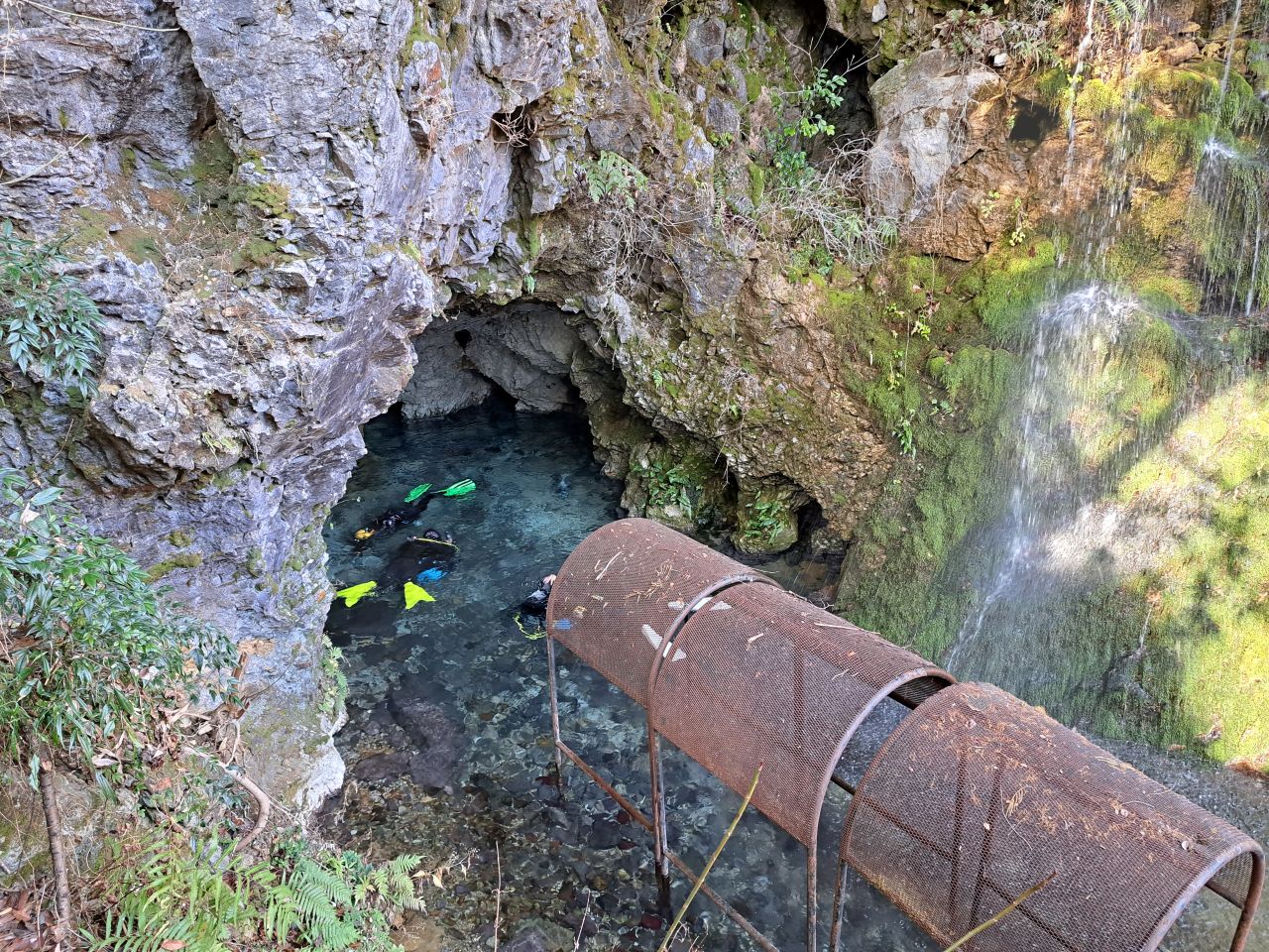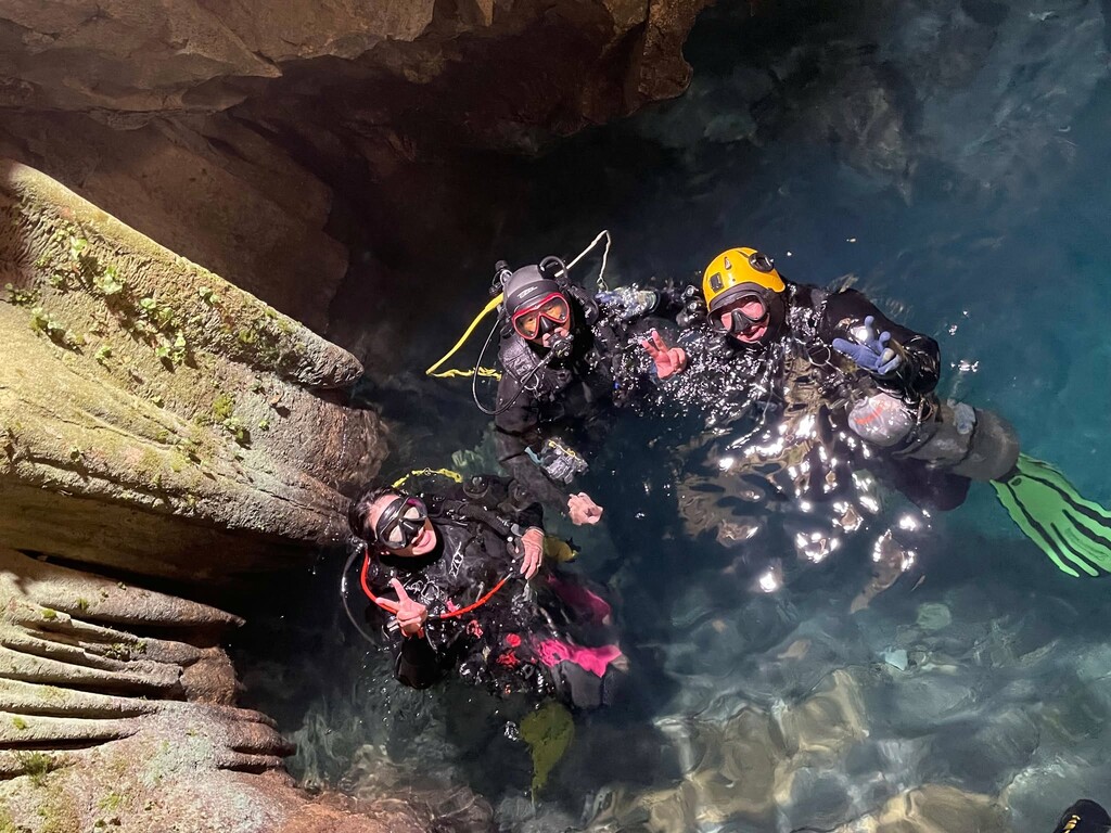 稲積水中鍾乳洞到着後、チェックダイブ