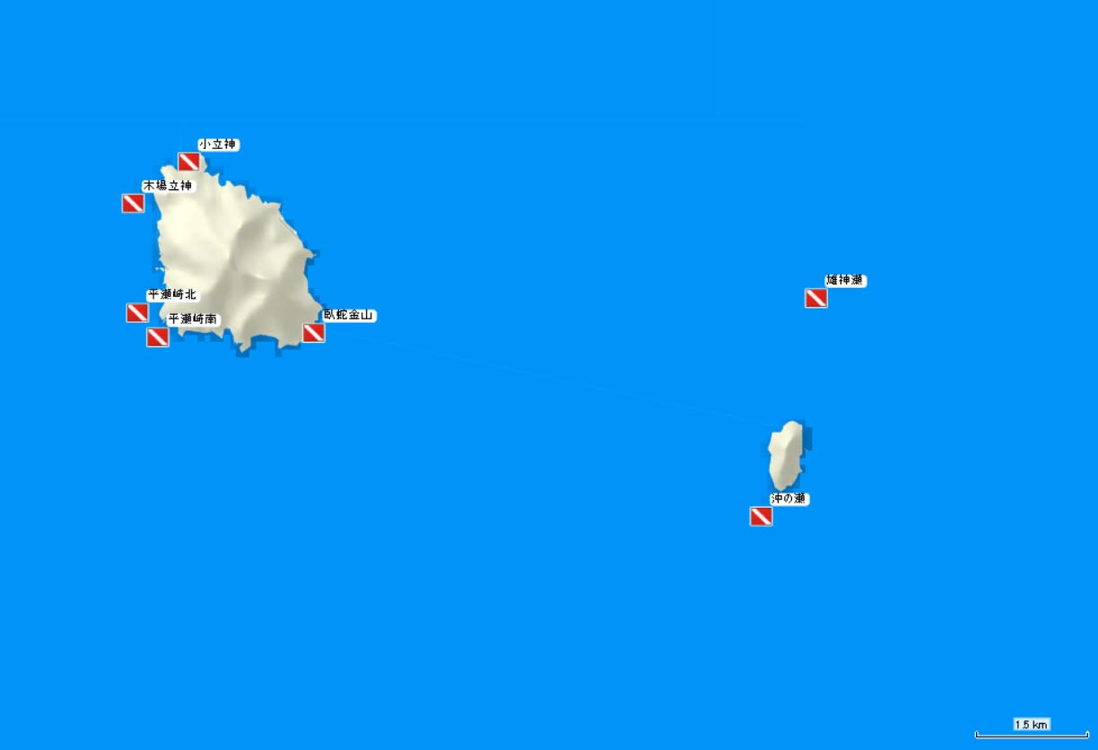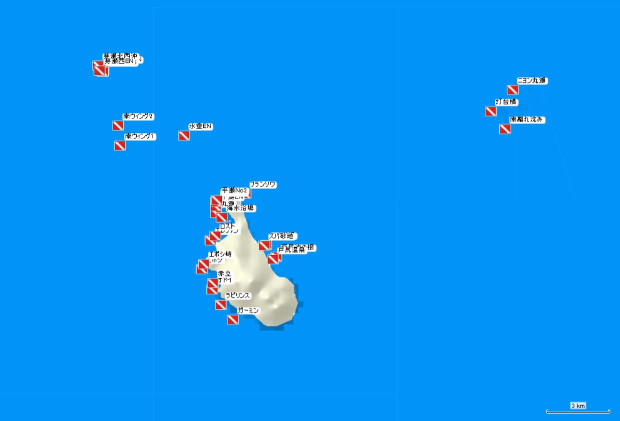 主に口之島から行くエリアですが、平島から行くエリアも記載しています。